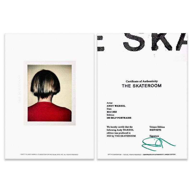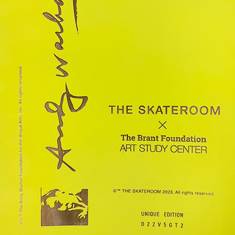 Self-Portrait (Yellow) is a one-of-a-kind unique edition skateboard by Andy Warhol (1928-1987), bearing the plate signature inverso of the artist. This piece comes custom framed. This piece is from a unique edition in partnership with The Brant Foundation. Each edition within the collection has its own color hue and unique Andy Warhol polaroid photograph printed on the board inverso. This piece comes custom framed. Includes Certificate of Authenticity. Measures approx. 38" x 14.5" (frame), 32" x 8.5" (skateboard).This item requires special handling and may have longer than usual turnaround.