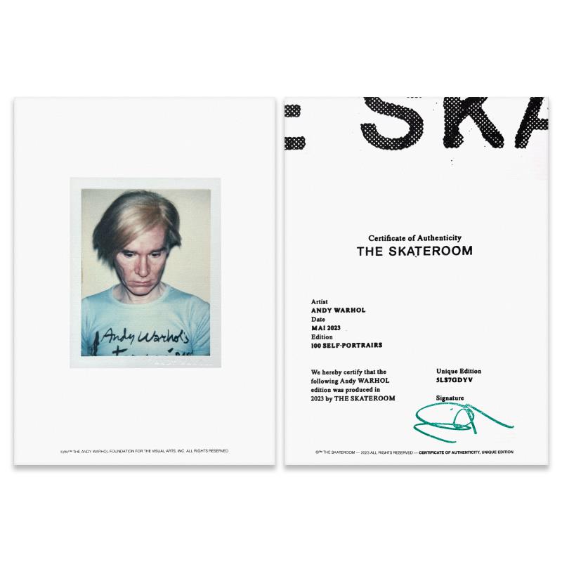 Self-Portrait (Orange) is a one-of-a-kind unique edition skateboard by Andy Warhol (1928-1987), bearing the plate signature inverso of the artist. This piece comes custom framed. This piece is from a unique edition in partnership with The Brant Foundation. Each edition within the collection has its own color hue and unique Andy Warhol polaroid photograph printed on the board inverso. This piece comes custom framed. Includes Certificate of Authenticity. Measures approx. 38" x 14.5" (frame), 32" x 8.5" (skateboard).This item requires special handling and may have longer than usual turnaround.