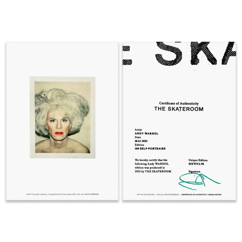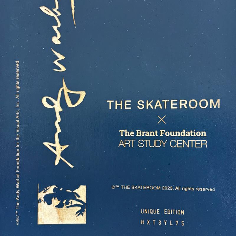 Self-Portrait (Grey) is a one-of-a-kind unique edition skateboard by Andy Warhol (1928-1987), bearing the plate signature inverso of the artist. This piece comes custom framed. This piece is from a unique edition in partnership with The Brant Foundation. Each edition within the collection has its own color hue and unique Andy Warhol polaroid photograph printed on the board inverso. This piece comes custom framed. Includes Certificate of Authenticity. Measures approx. 38" x 14.5" (frame), 32" x 8.5" (skateboard).This item requires special handling and may have longer than usual turnaround.