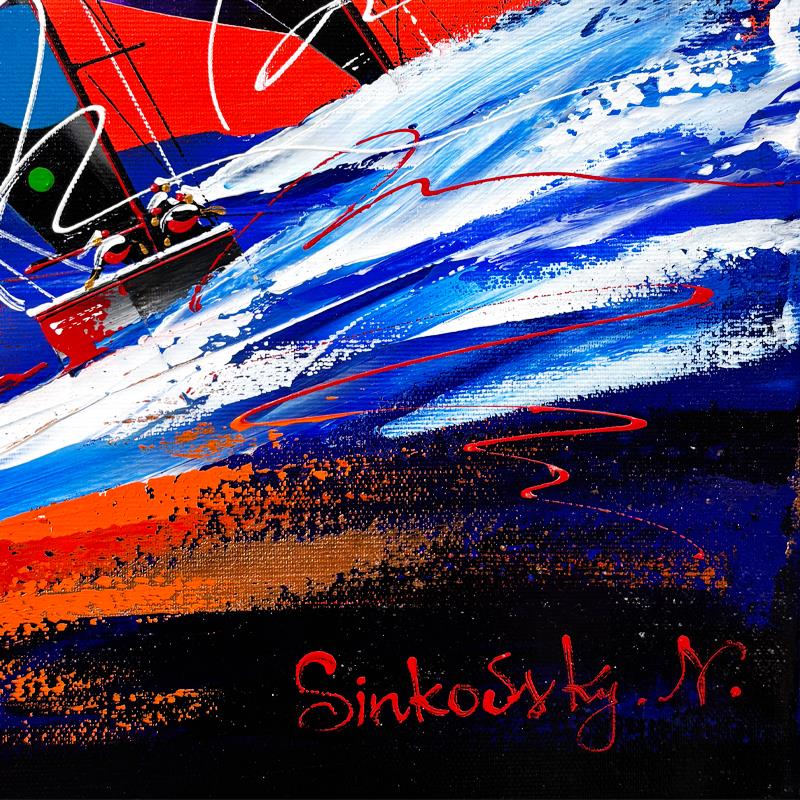 Born in 1959, in Kazakhstan, Natalia Sinkovsky finished her Master’s in Architecture in her homeland, where she also took drawing and painting courses. Sinkovsky immigrated to Israel with her family in 1995 and initially worked as an interior designer and architect, before expanding into painting professionally in 2002. Primarily painting in acrylic, Sinkovsky initiates her artistic process with an idea, rather than a predefined sketch, and applies layers of paint in thick application using a palette knife, before adding small graphic elements. She appreciates all art styles and movements, but is primarily inspired by abstract art and modern design, due in part to her background in architecture. Her sailboats series are influenced by her appreciation for the Expressionist, Baroque, and Cubist movements. In her artwork, Sinkovsky employs bright, cheerful colors to complement her optimistic outlook on life.