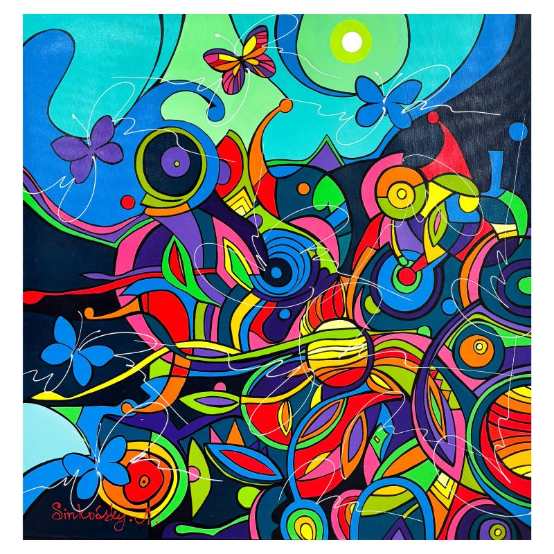 This is an original acrylic painting on canvas by Natalia Sinkovsky, hand signed by the artist. Includes Letter of Authenticity. Measures approx. 31.5" x 31.5" (image).