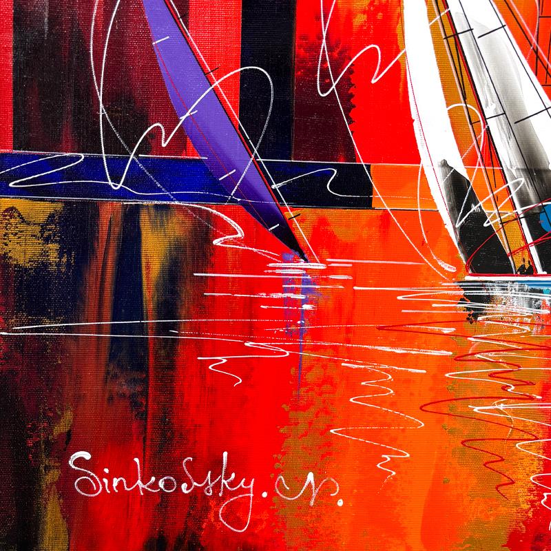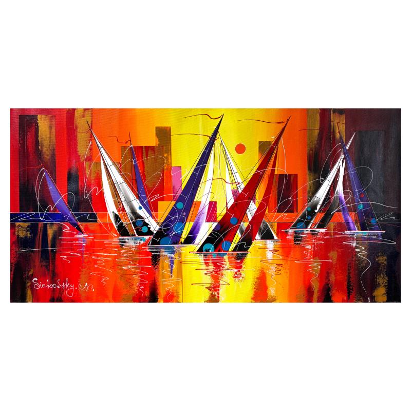 Born in 1959, in Kazakhstan, Natalia Sinkovsky finished her Master’s in Architecture in her homeland, where she also took drawing and painting courses. Sinkovsky immigrated to Israel with her family in 1995 and initially worked as an interior designer and architect, before expanding into painting professionally in 2002. Primarily painting in acrylic, Sinkovsky initiates her artistic process with an idea, rather than a predefined sketch, and applies layers of paint in thick application using a palette knife, before adding small graphic elements. She appreciates all art styles and movements, but is primarily inspired by abstract art and modern design, due in part to her background in architecture. Her sailboats series are influenced by her appreciation for the Expressionist, Baroque, and Cubist movements. In her artwork, Sinkovsky employs bright, cheerful colors to complement her optimistic outlook on life.