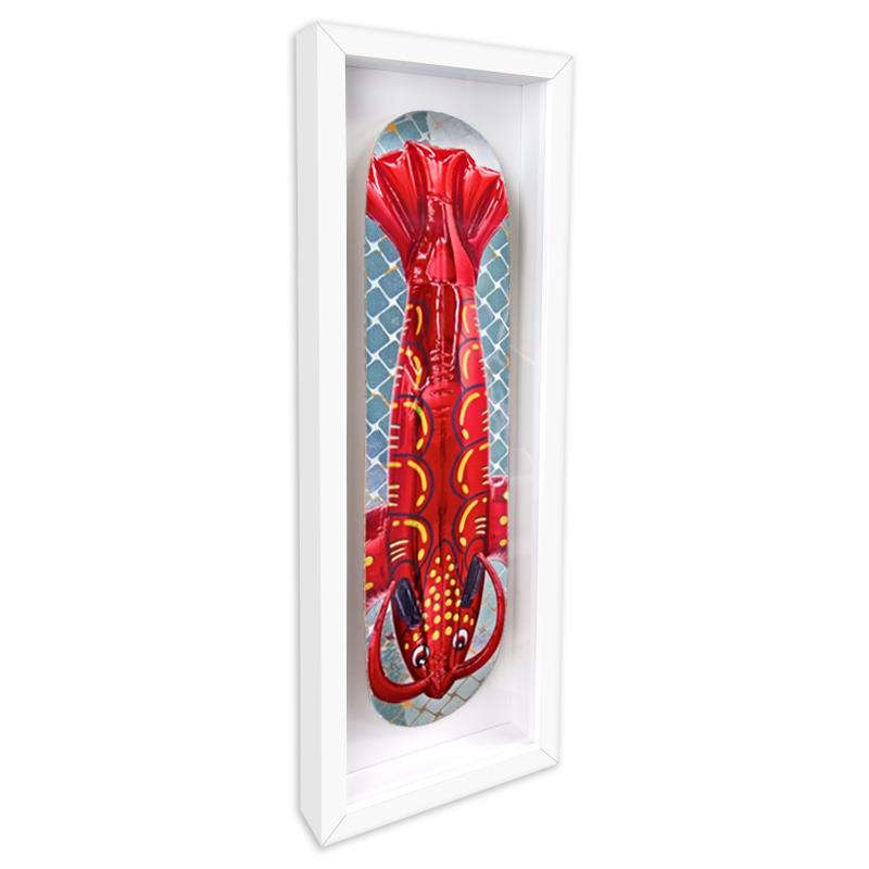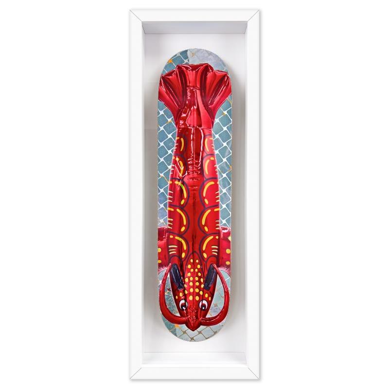 "Lobseter" is a limited edition skateboard featuring art by Jeff Koons, bearing the plate signature of the artist inverso. This comes custom framed. Includes Letter of Authenticity. Measures approx. 38" x 14.5" (frame), 32" x 8.5" (skateboard). This item requires special handling and may have a longer than usual turnaround.