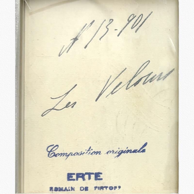 "Final, les Velours, 1955 for Narcisse" is an original gouache painting on paper by Erte (1892-1990), hand signed by the artist. This piece comes framed. Includes Letter of Authenticity. Measures approx. 21.5" x 17.5" (frame), 14" x 10" (image).Due to being previousl displayed in a gallery there is wear on the frame (corners).
