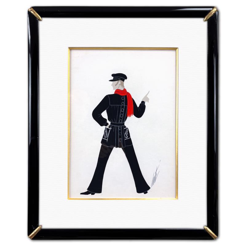 Erte (1892-1990), "Pickpockets, Ecolier, August 29, 1962" Framed Original Gouache Painting, Hand Signed with Letter of Authenticity.