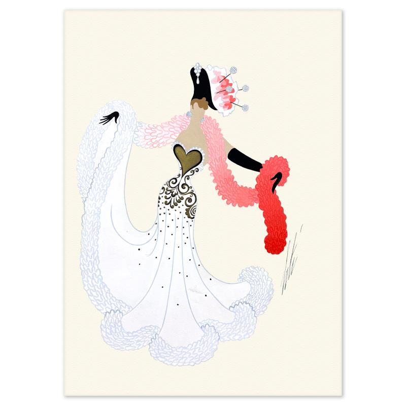 Having entered the fashion world in his early 20’s, Erte remained active well into his 90’s, with numerous books published on his life’s work, including two large format books, "Erte at Ninety," and "Erte at Ninety-Five," as well as one on sculpture, "Erte Sculpture." Upon his death in 1990, he was hailed as the undisputed "Prince of the Music Hall," the "Mirror for Fashion for 75 years," and “The Father of Art Deco.”