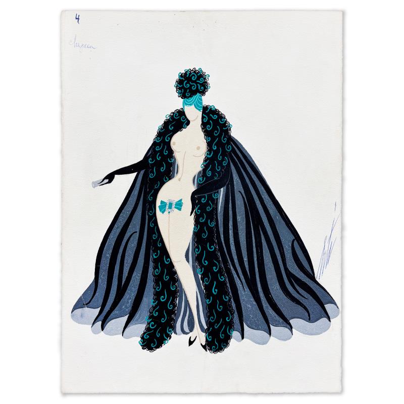 Erte (1892-1990), "Mannequin, 15 Fevrier 1958" Original Gouache Painting, Hand Signed with Letter of Authenticity.