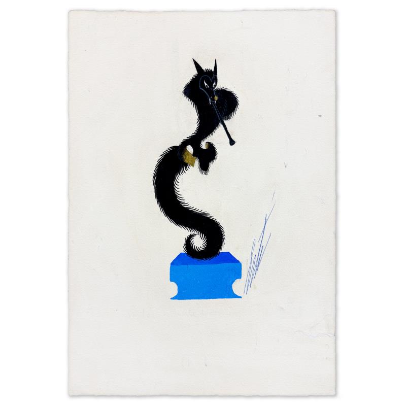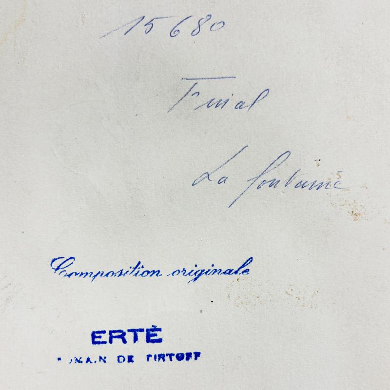 Erte (1892-1990), "Phi-Phi, Decor Fait pour les Bouffes-Parisiens, 17 Mars 1957" Original Gouache Painting, Hand Signed with Letter of Authenticity.