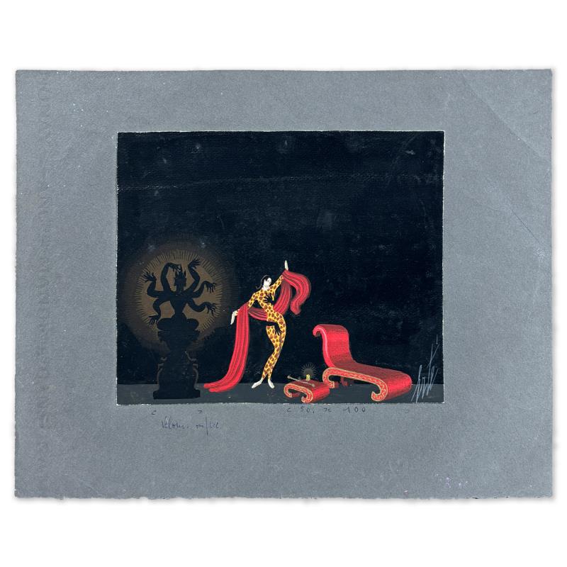 Erte (1892-1990), "Mains Noires, Decor, 16 Janvier 1958" Original Gouache Painting, Hand Signed with Letter of Authenticity.