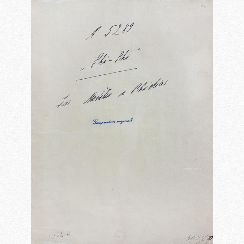 "Phi-Phi, les Modeles de Phidias, 14 Aout 1940" is an original gouache painting on paper by Erte (1892-1990), hand signed by the artist. Includes Letter of Authenticity. Measures approx. 12.5" x 9" (image).