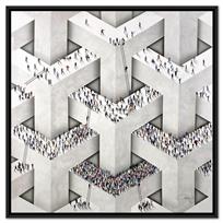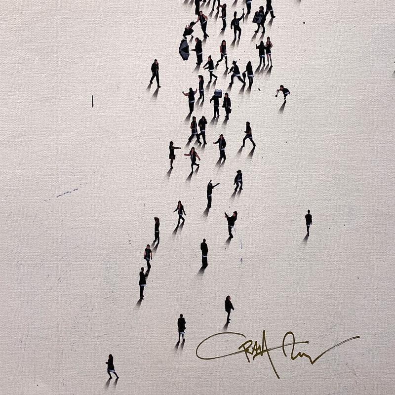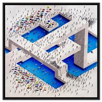 One of Alan’s notable series, "Populus," features intricate paintings of tiny people forming iconic images. This work showcases characters from diverse walks of life, demonstrating a broad spectrum of character and body types through brilliant use of posture and movement. The figures in Alan’s "Populus" series are meticulously arranged to create larger, recognizable images, highlighting his inventive approach and the thematic exploration of individual versus collective identity.