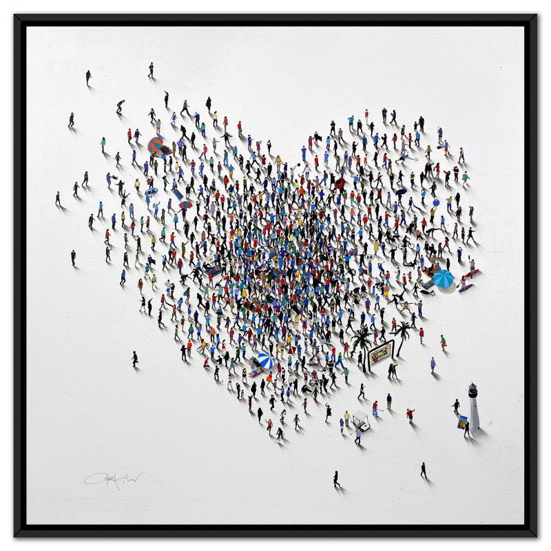 One of Alan’s notable series, "Populus," features intricate paintings of tiny people forming iconic images. This work showcases characters from diverse walks of life, demonstrating a broad spectrum of character and body types through brilliant use of posture and movement. The figures in Alan’s "Populus" series are meticulously arranged to create larger, recognizable images, highlighting his inventive approach and the thematic exploration of individual versus collective identity.