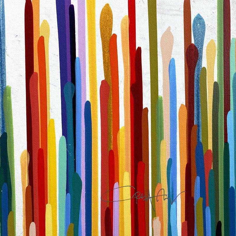 Canvas works are typically framed without plexi so that the vibrancy and interaction with light can be best appreciated.