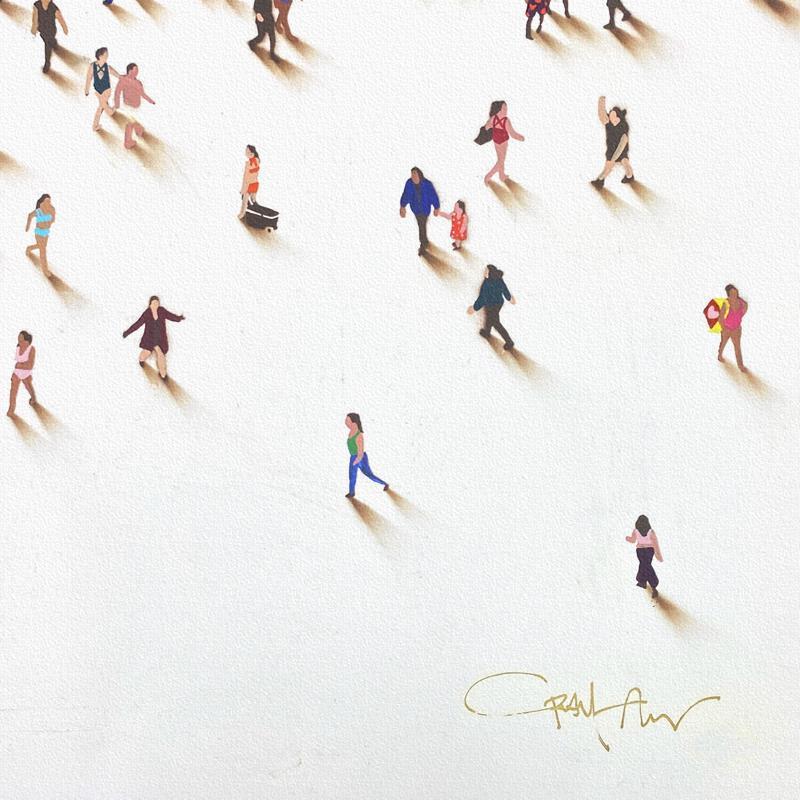 One of Alan’s notable series, "Populus," features intricate paintings of tiny people forming iconic images. This work showcases characters from diverse walks of life, demonstrating a broad spectrum of character and body types through brilliant use of posture and movement. The figures in Alan’s "Populus" series are meticulously arranged to create larger, recognizable images, highlighting his inventive approach and the thematic exploration of individual versus collective identity.
