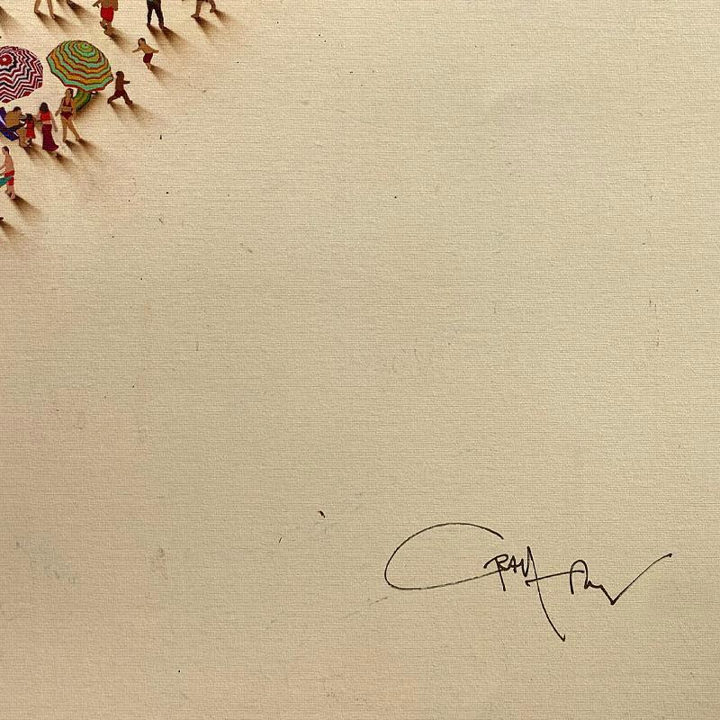 One of Alan’s notable series, "Populus," features intricate paintings of tiny people forming iconic images. This work showcases characters from diverse walks of life, demonstrating a broad spectrum of character and body types through brilliant use of posture and movement. The figures in Alan’s "Populus" series are meticulously arranged to create larger, recognizable images, highlighting his inventive approach and the thematic exploration of individual versus collective identity.