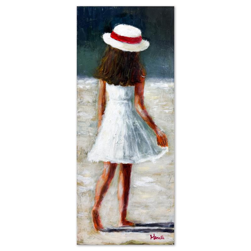 "Summer Dress" is an original painting on stretched canvas by Michael Maselli, hand signed by the artist. Includes Letter of Authenticity. Measures approx. 29" x 12" (image).