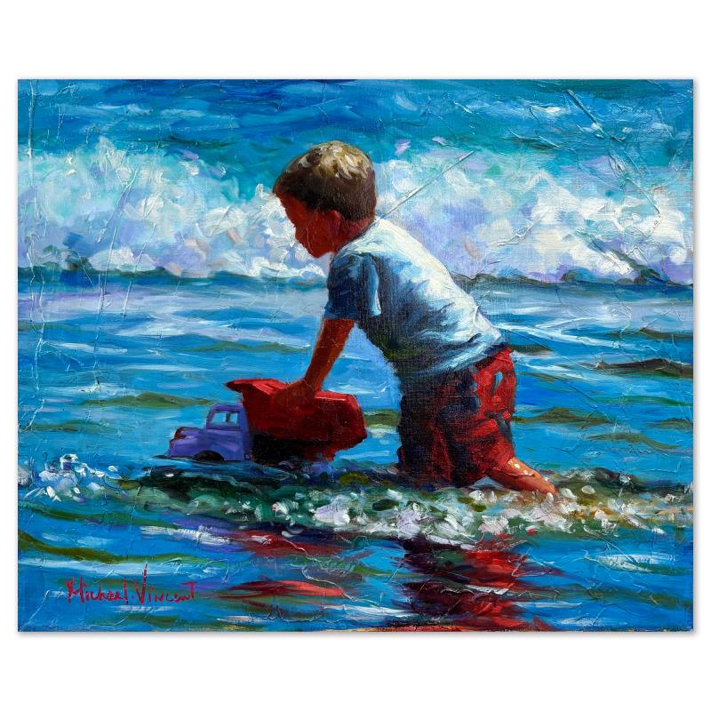 "Keep on Truckin" is an original painting on stretched canvas by Michael Vincent, hand signed by the artist. Includes Letter of Authenticity. Measures approx. 16" x 20" (image).