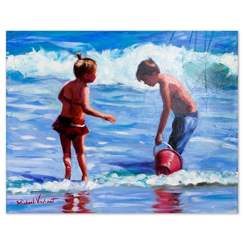 Michael Vincent, "Lets Play" Original Painting on Canvas, Hand Signed with Letter of Authenticity.
