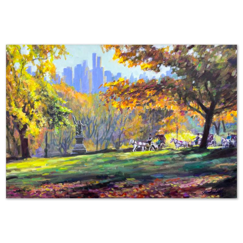 "Carriage Ride" is an original acrylic painting on stretched canvas by Richard Ho, hand signed by the artist. Includes Letter of Authenticity. Measures approx. 24" x 36" (image).