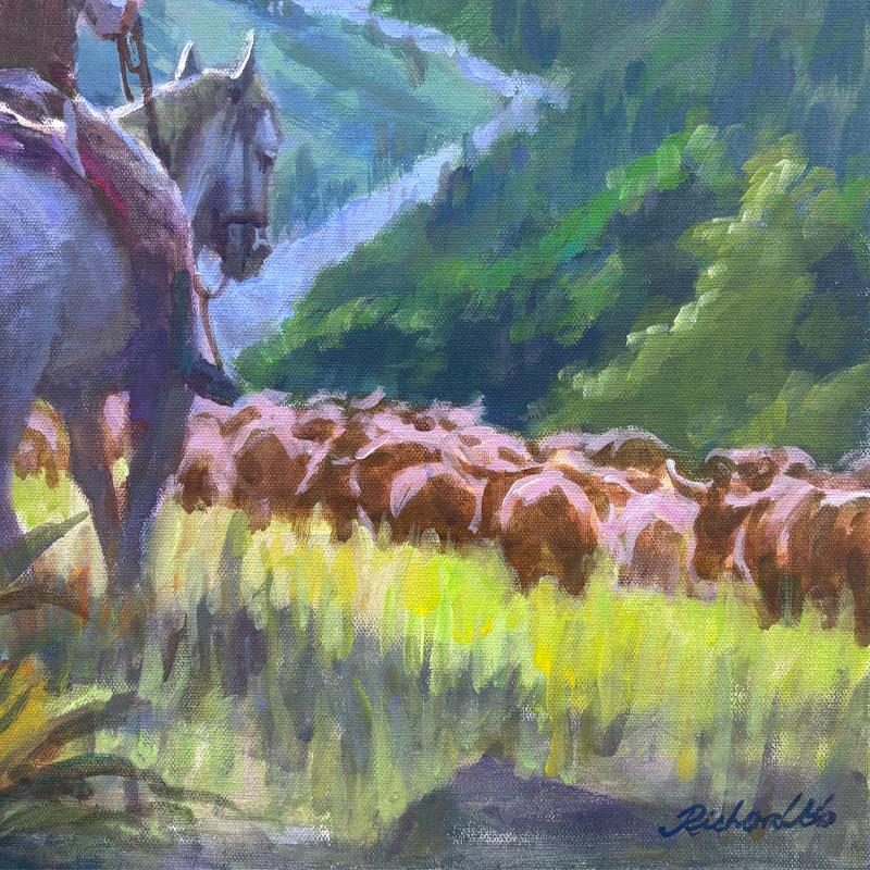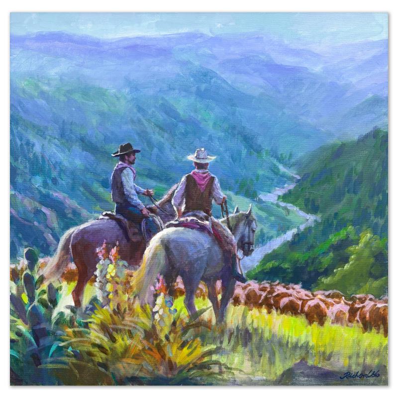 "Montana" is an original acrylic painting on stretched canvas by Richard Ho, hand signed by the artist. Includes Letter of Authenticity. Measures approx. 24" x 24" (image).